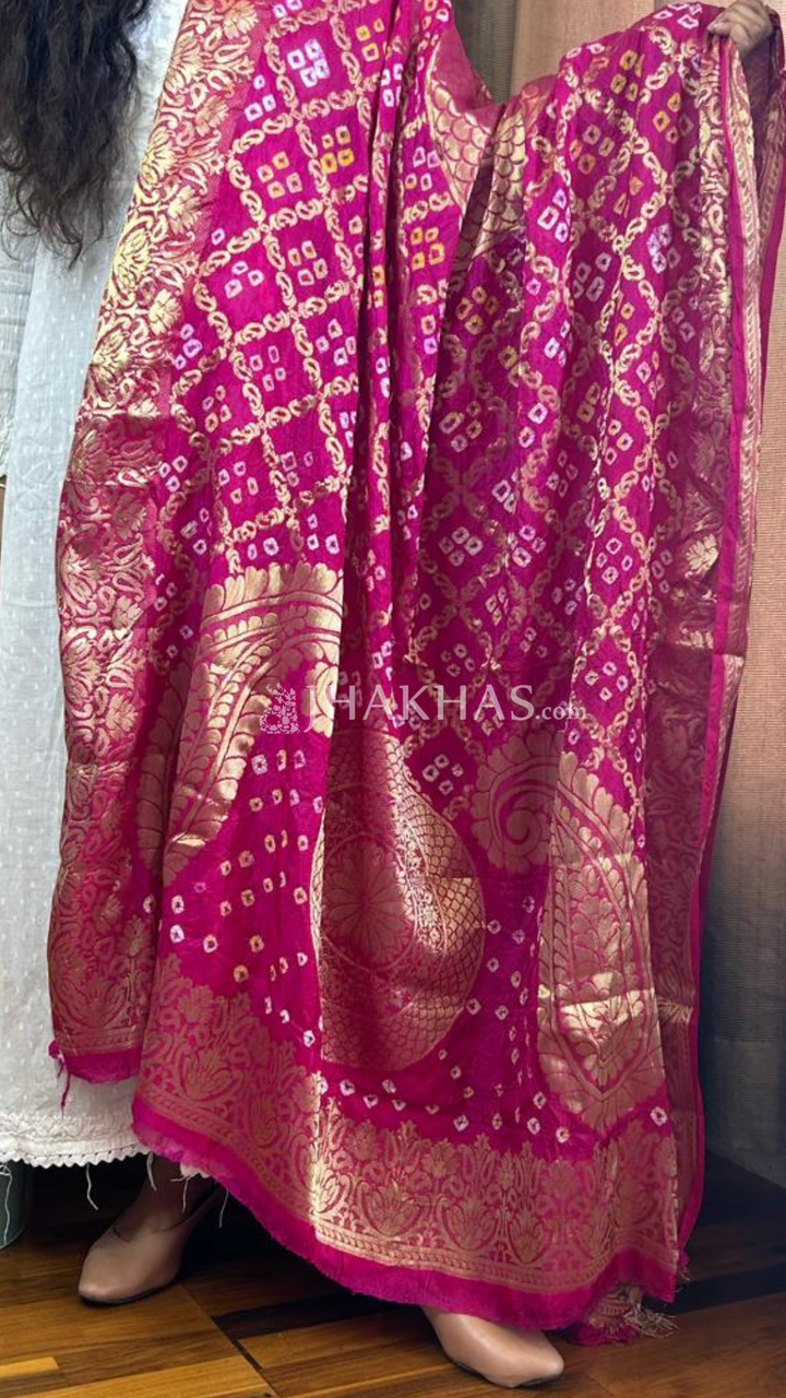 Rani Pink Banarasi Gharchola Soft Silk Dupatta