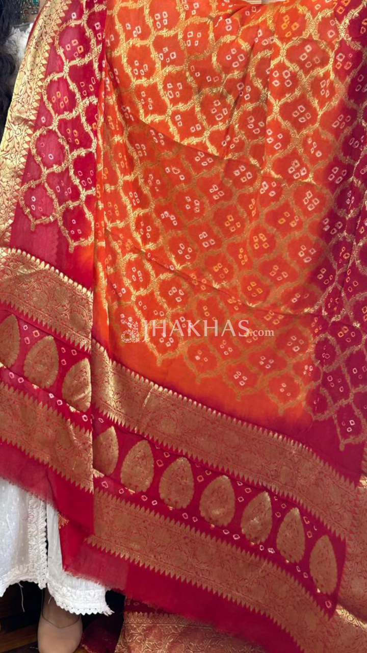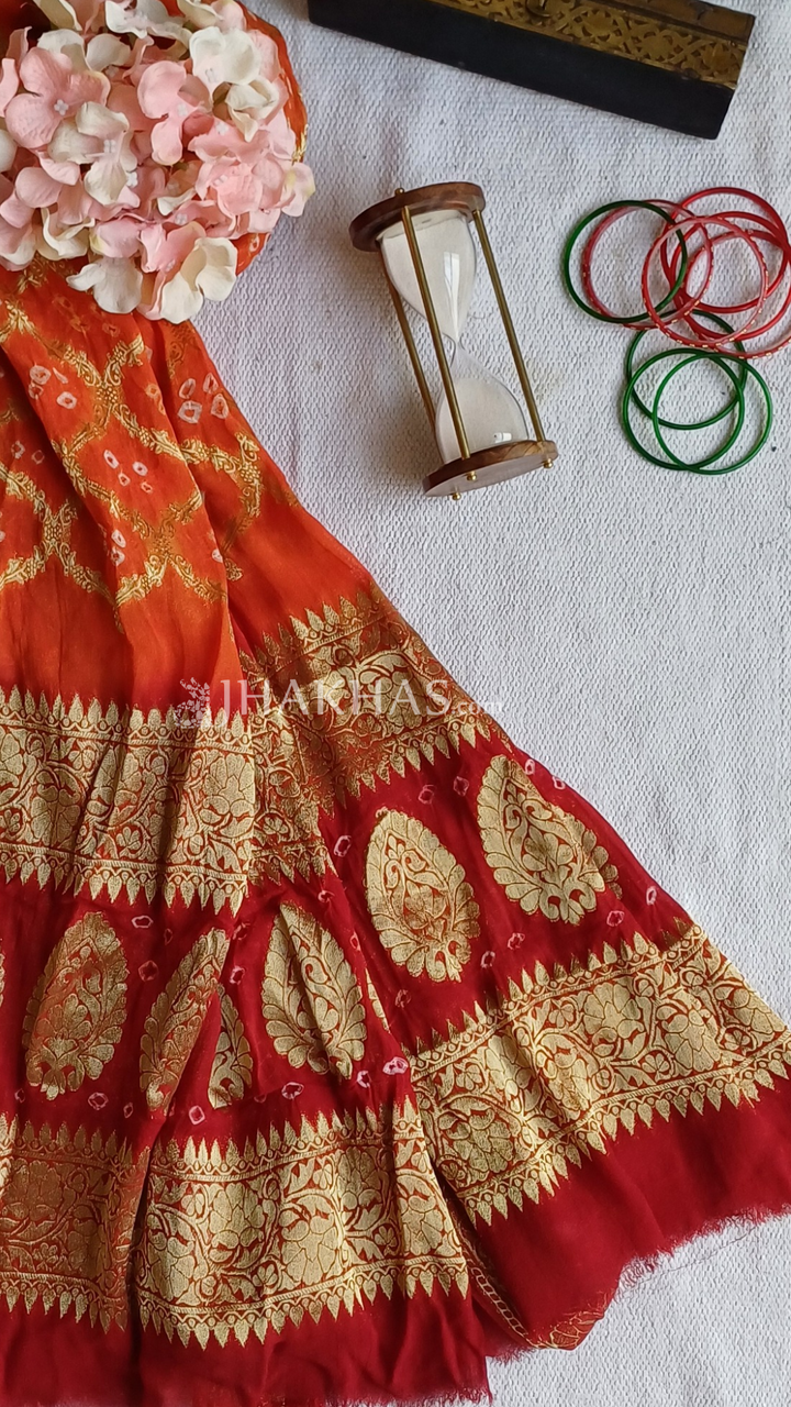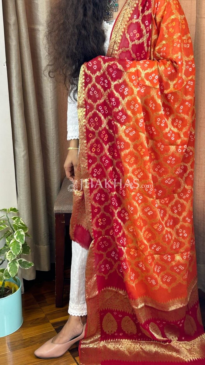 - Orange Red Trending Banarasi Ghatchola Georgette Dupatta