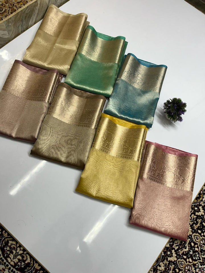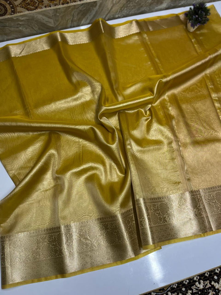 Shimmer Yellow Banarasi Soft Tissue Saree