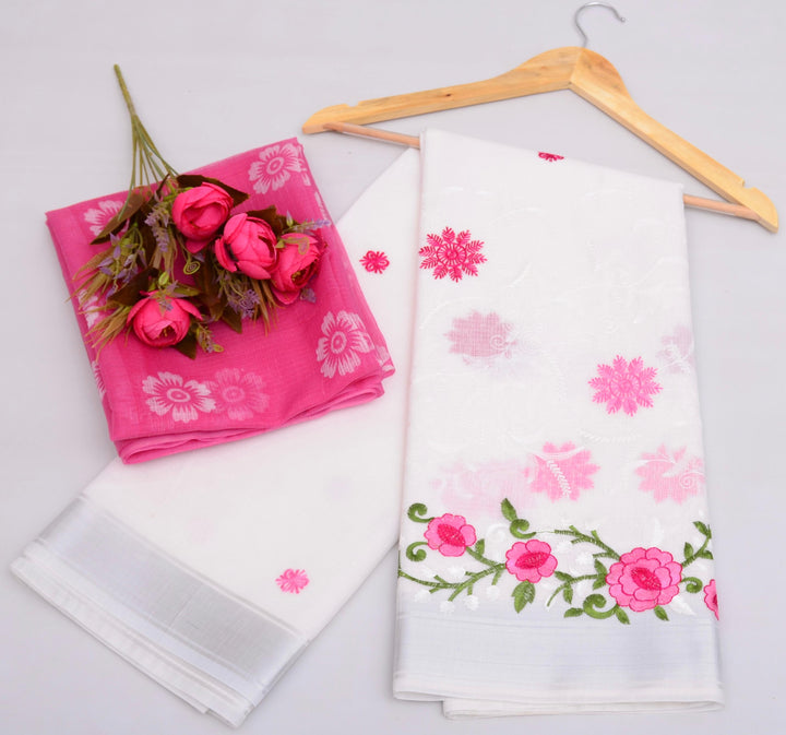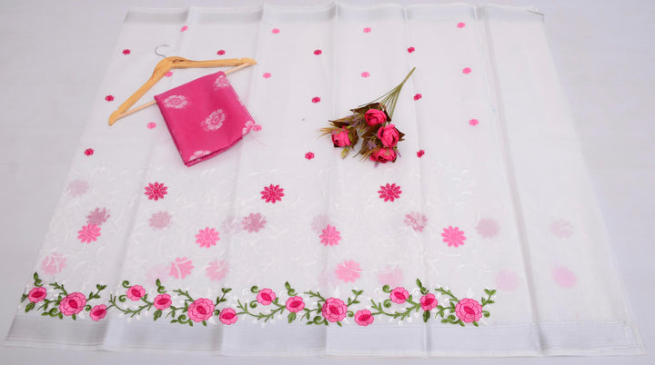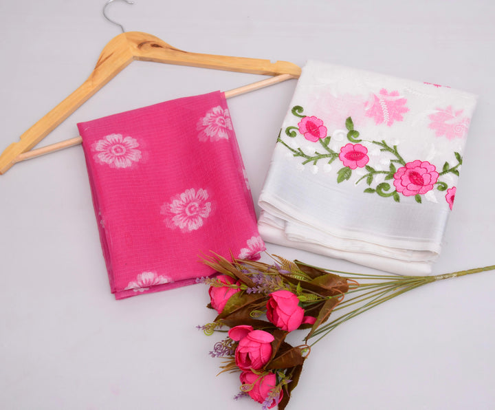 Transform your wardrobe with our Pink Kota Doria Embroidery Work Saree!