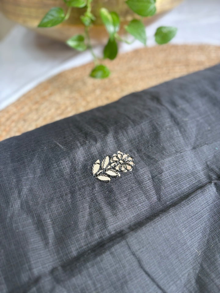 Black Kota Doria Gota Patti Saree Comes With Blouse. The Saree Comes With Designer Gota Patti Work On Border And Boota. Wear This Kota Doria Saree as Casual Meeting Saree Or Kitty Party Saree. Saree Length - 6.5 Mtr With Blouse.