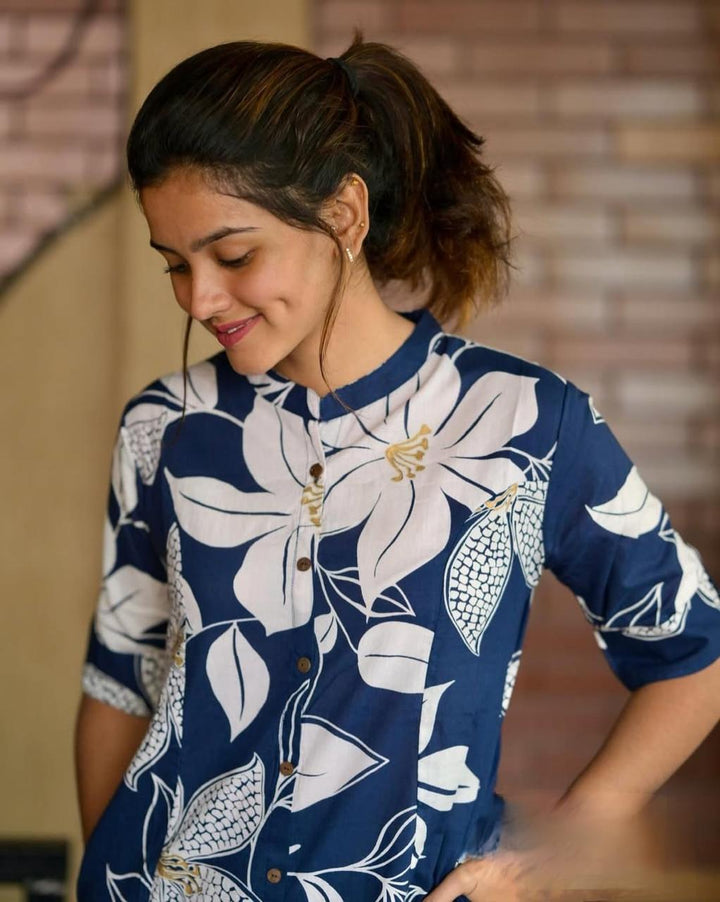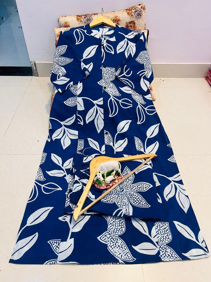 - Blue printed Cotton Designer Kurti Pant Co-ord Set