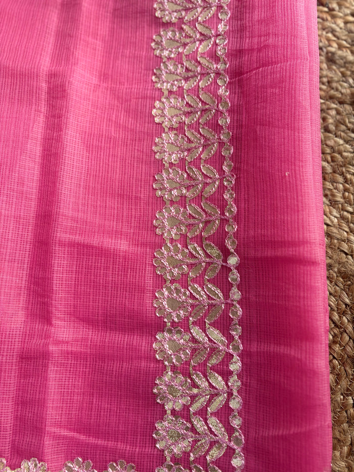 Pink Kota Doria Gota Patti Saree