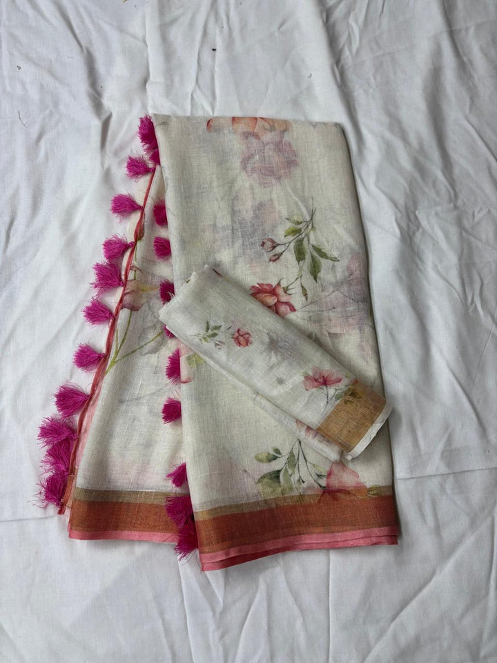 We Present. This Saree Features Beautiful Prints All Over And Pallu It Is An Ultra-Lightweight, Skin-Friendly, And Comfortable Saree. It Comes With A Attached Blouse, Allowing You To Customize It In Your Own Style.