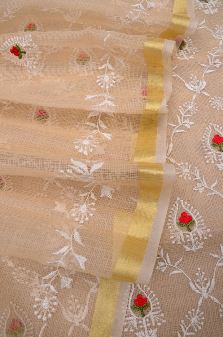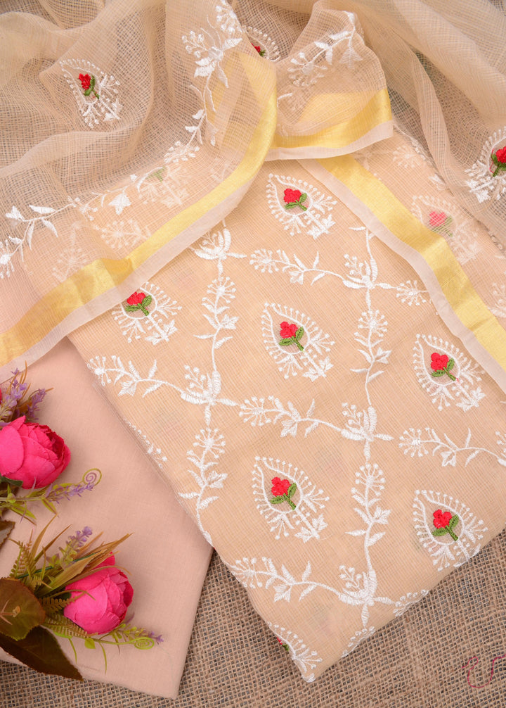 Karabi- Cream Kota Doria Embroided Suit Fabric With Dupatta (unstitched)