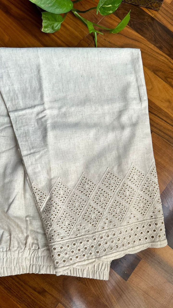 Haseena Pakistani Cut Work Cream Straight Pant In Cotton For Womeni
