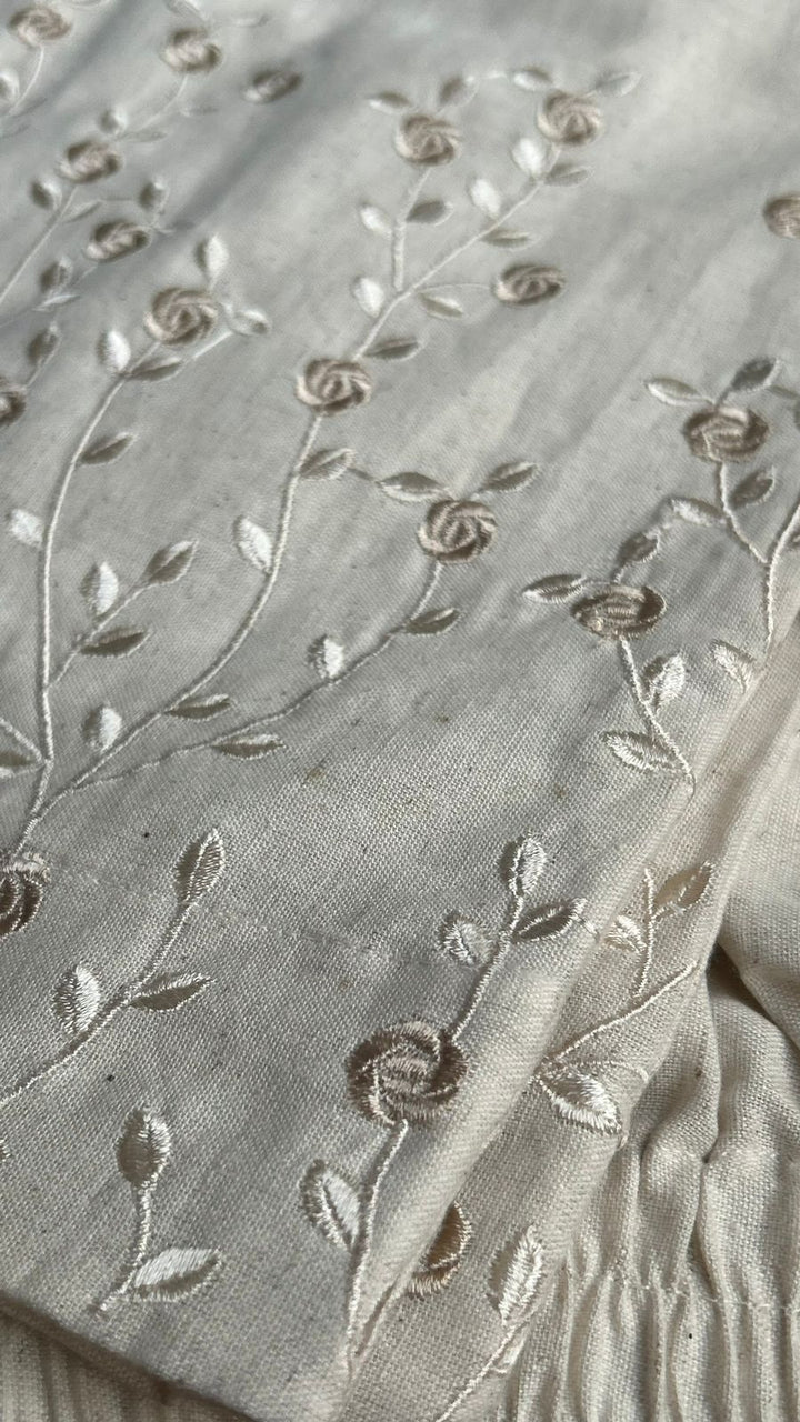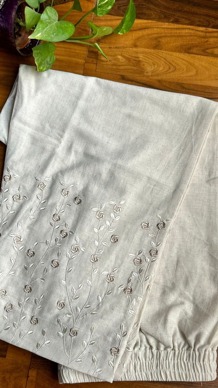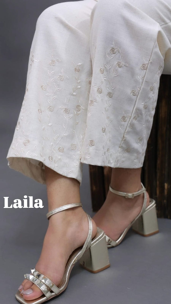 Laila Cream Embroidery Straight Pant In Cotton For Office