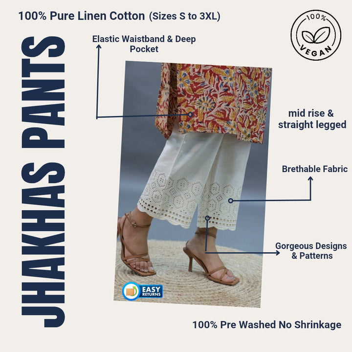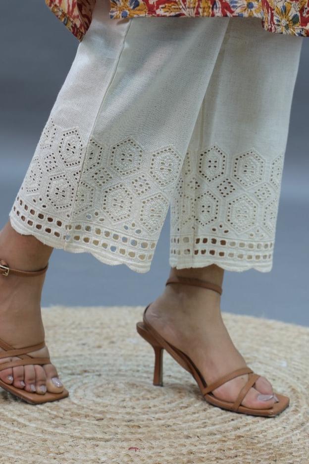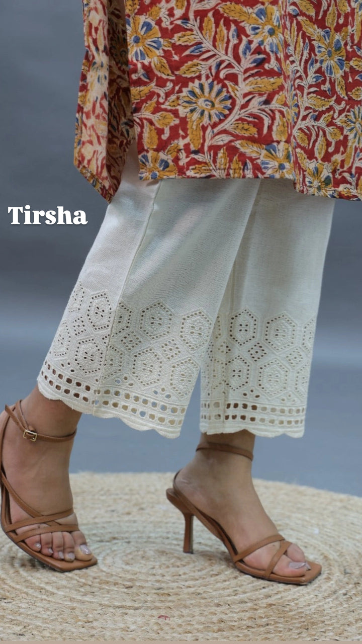 Tirsha Women Cream Straight Pant In Embriodery Work