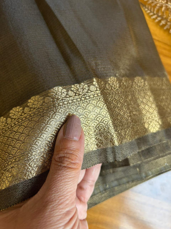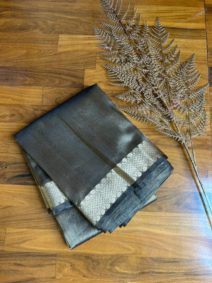 Dark Grey Banarasi Organza Tissue Saree online