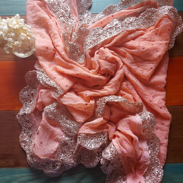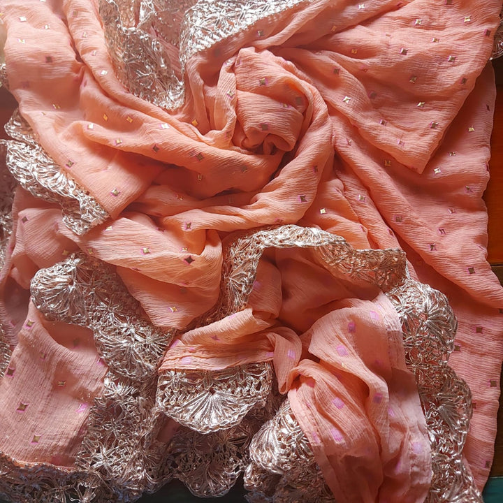 Impart a look full of elegance, style and class with this stunning Orange dupatta from Jhakhas. Crafted in premium quality chiffon this dupatta is accented with elegant gotta patti work details and makes for an apt inclusion to your traditional wardrobe. Tailored for perfection, coordinate this dupatta with a pared-back kurta and palazzo set to attain an alluring festive look.