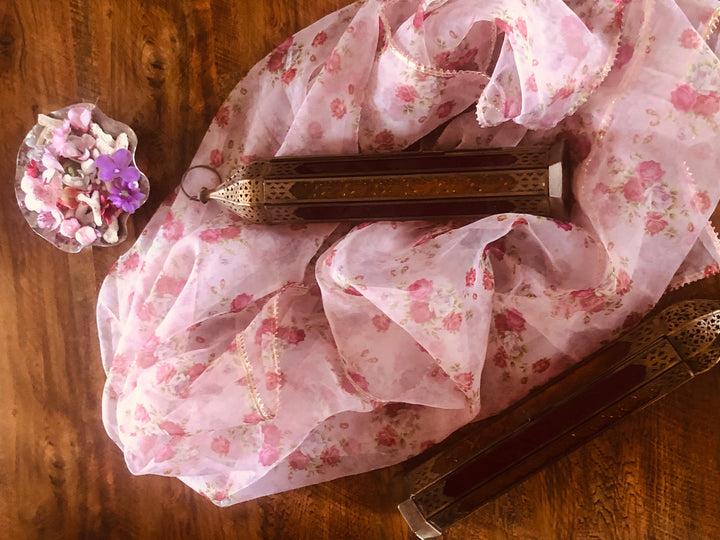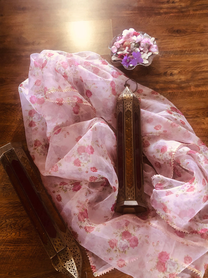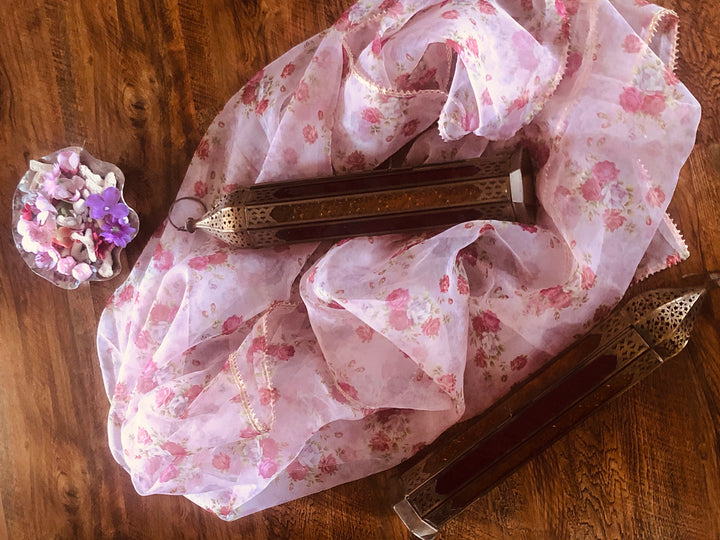 Impart a look full of elegance, style and class with this stunning flocalåÊdupatta from Jhakhas. Crafted in premium quality organza aåÊthis dupatta is accented with elegant gota border details and makes for an apt inclusion to your traditional wardrobe. Tailored for perfection, coordinate this dupatta with a pared-back kurta and palazzo set to attain an alluring festive look.
