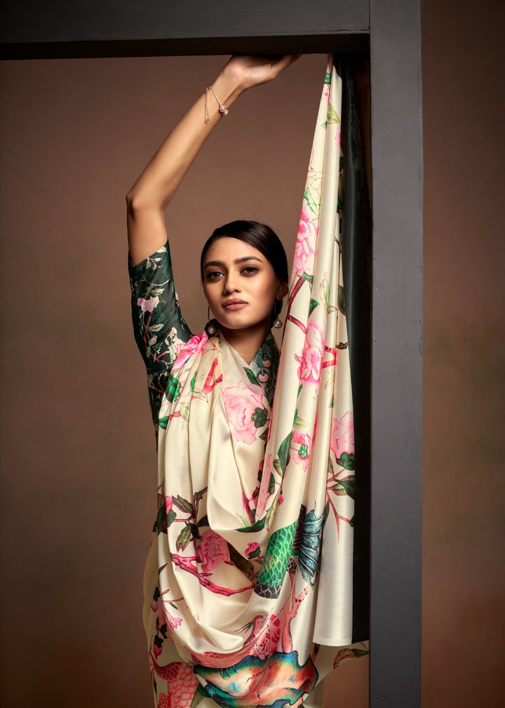 "Elevate your elegance with our exquisite collection of digital print sarees. Crafted to perfection, these sarees seamlessly blend traditional aesthetics with contemporary flair, making them a captivating choice for any occasion. Get Fast Shipping And Cash On Delivery With This Awesome Digital print Saree With Blouse ,From Our Webstore Jhakhas.Com