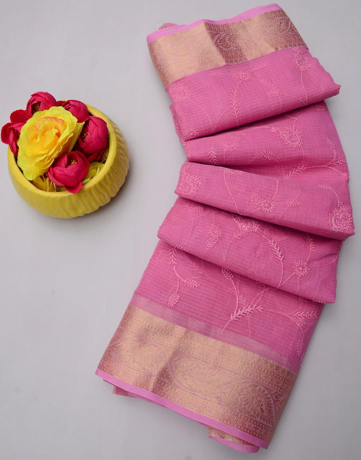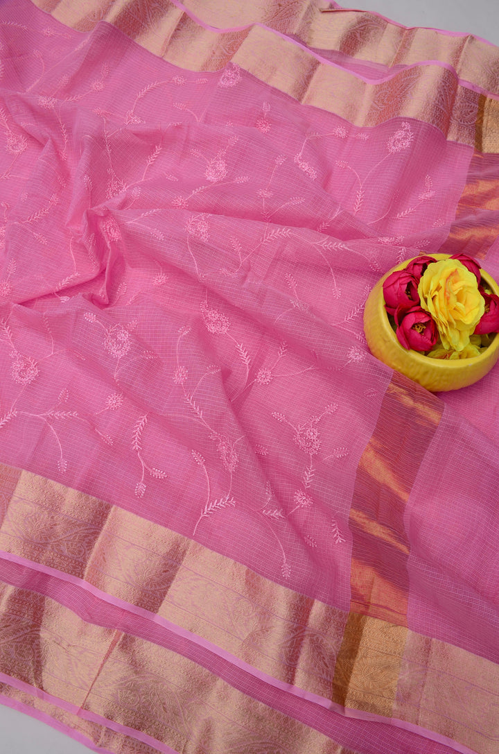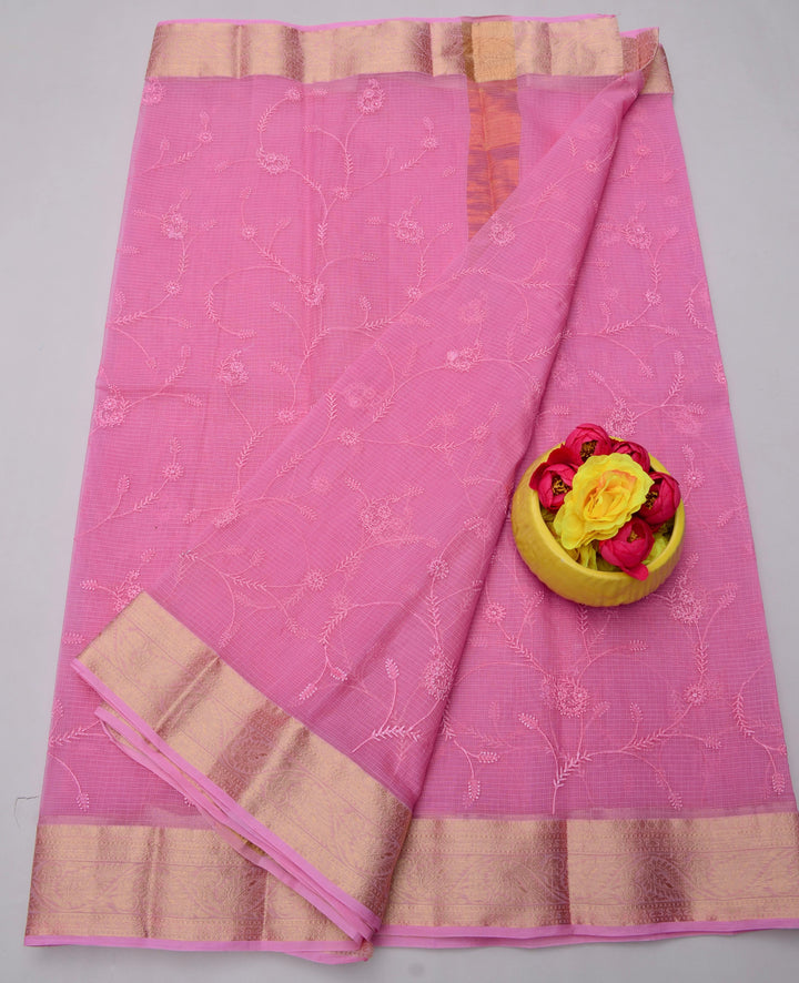 Chandrabai- Pink Kota Doria All Over Embroidery Work Saree