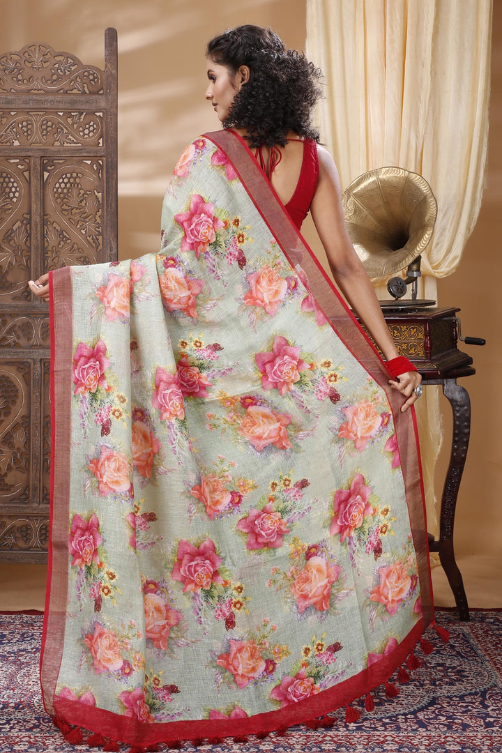 We Present. This Saree Features Beautiful Prints All Over And Pallu It Is An Ultra-Lightweight, Skin-Friendly, And Comfortable Saree. It Comes With A Attached Blouse, Allowing You To Customize It In Your Own Style.
