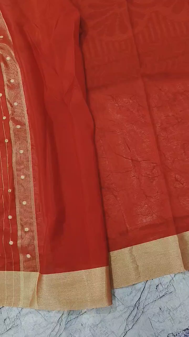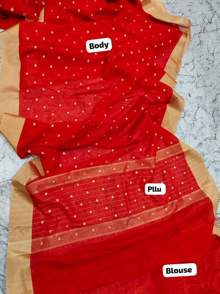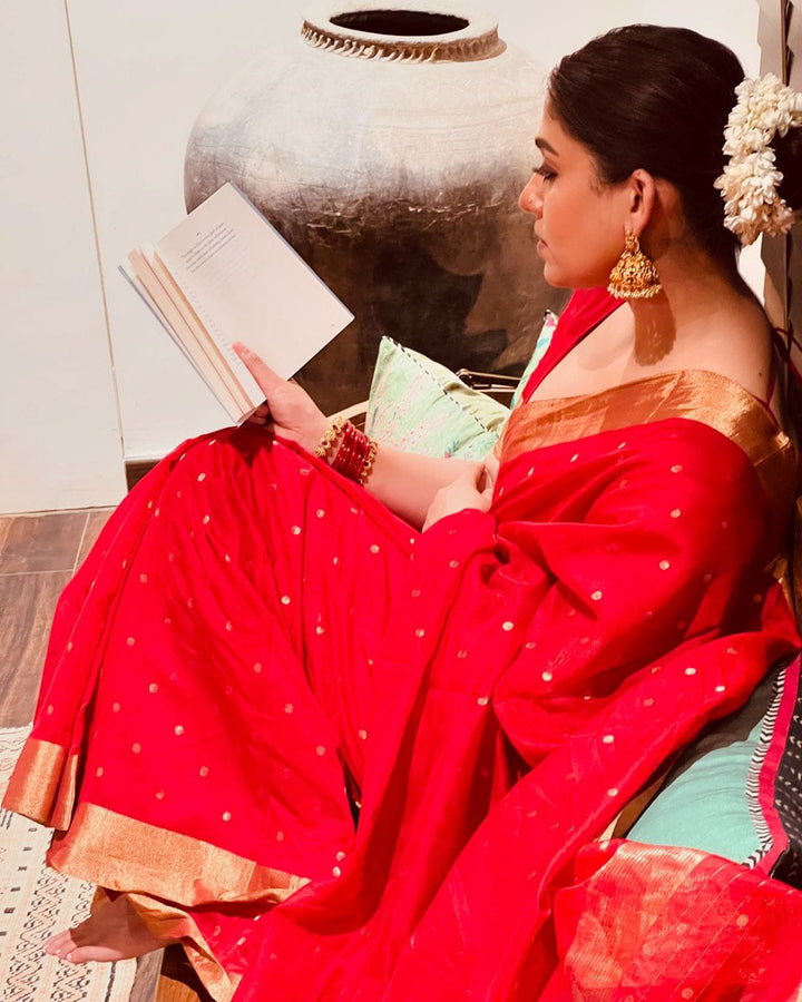 - Beautiful Red Banarasi Soft Silk Saree