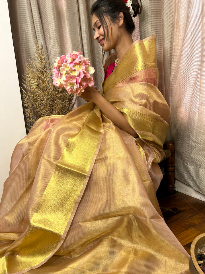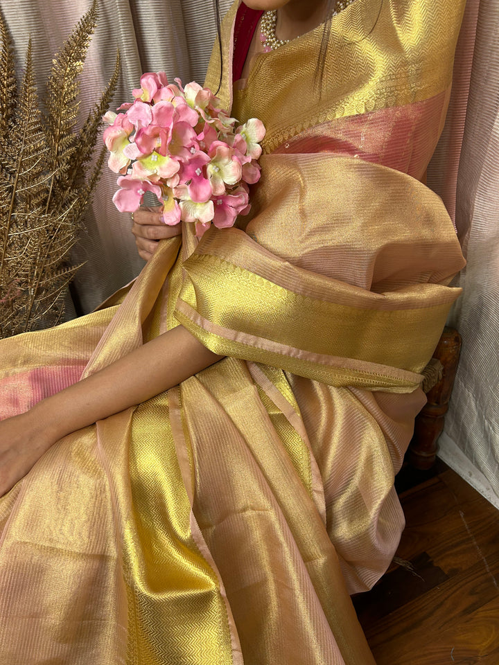 - Ethereal Golden Banarasi Organza Tissue Saree