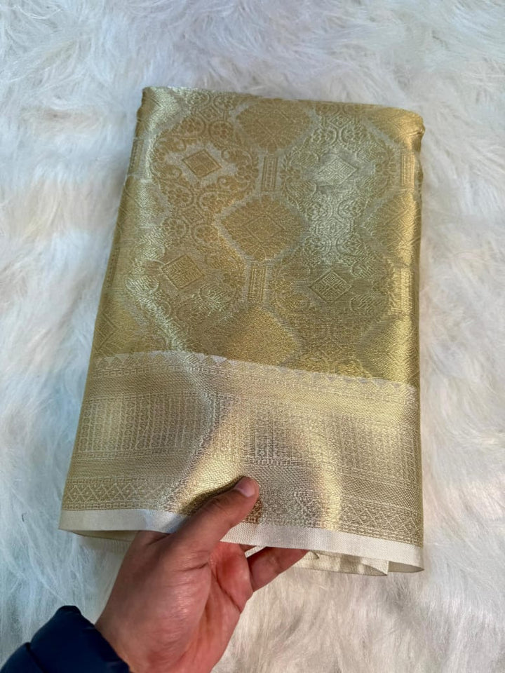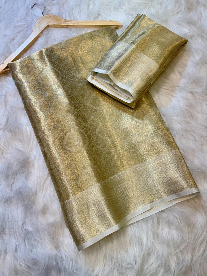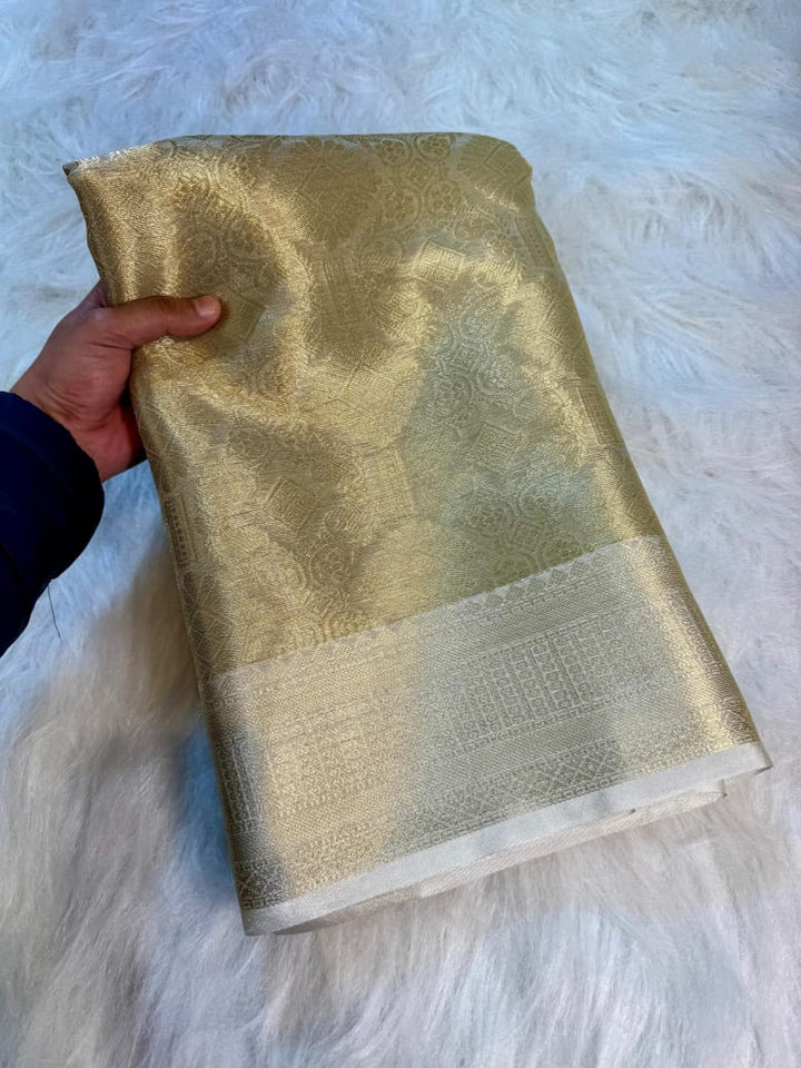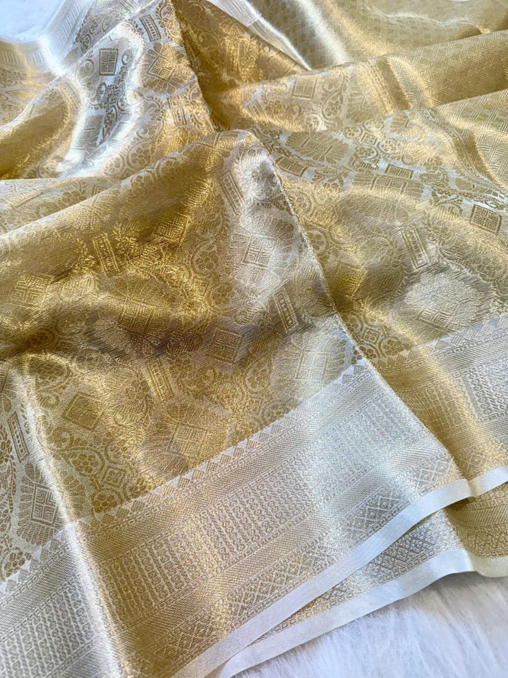 Golden Banarasi Tissue Silver Zari Silk Saree