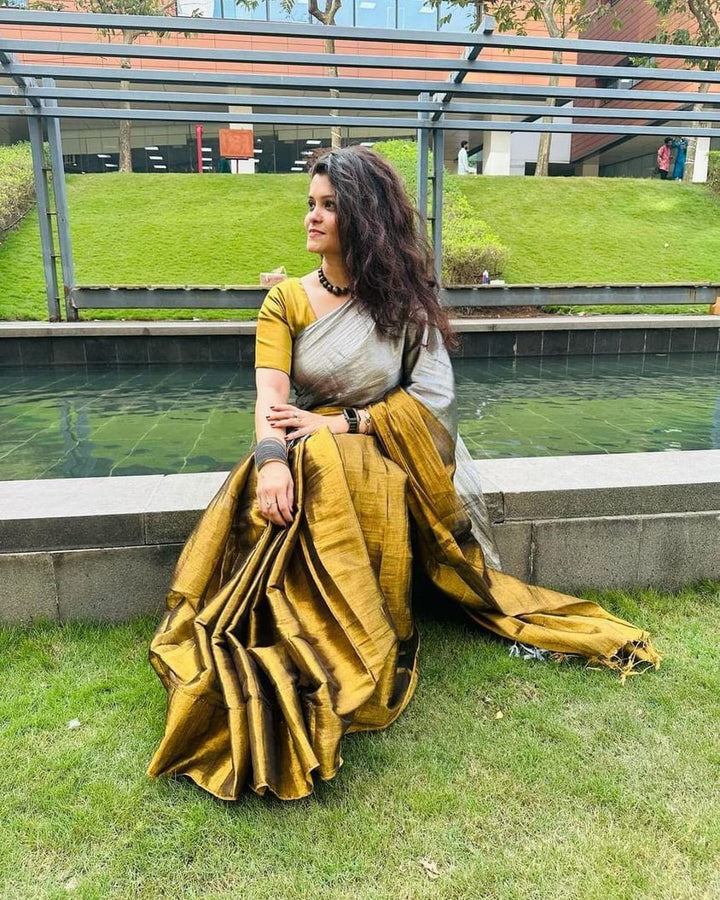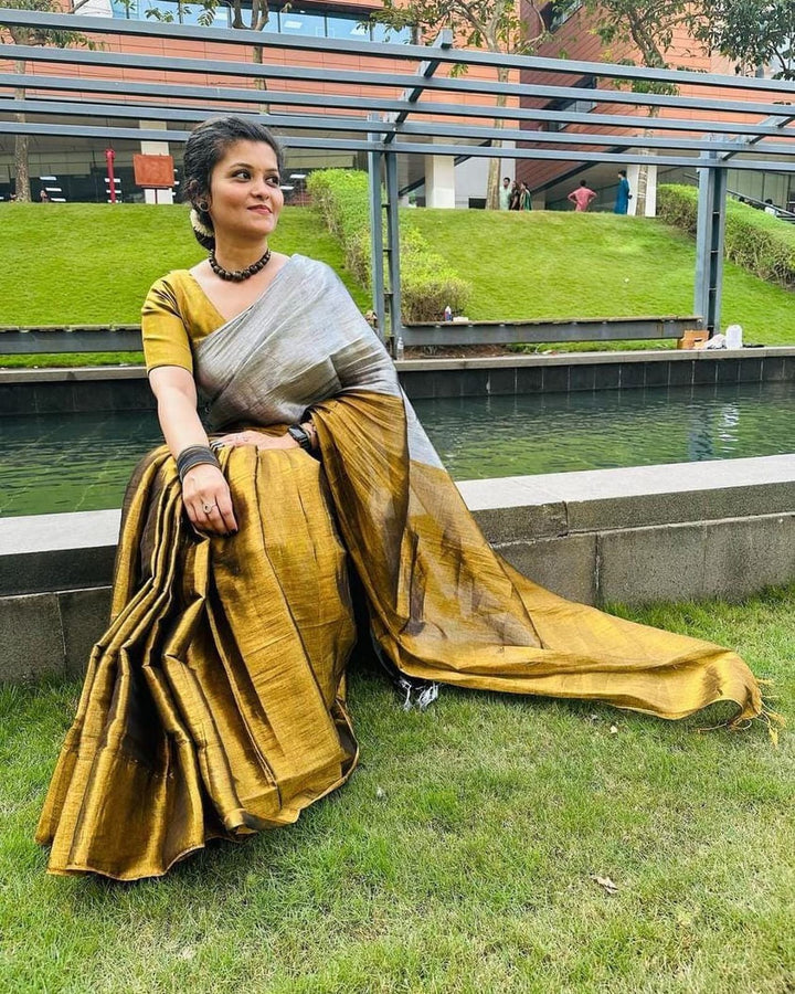 - Subtle shimmer adds luxurious and ethereal element to the drape(pallu)