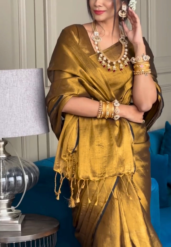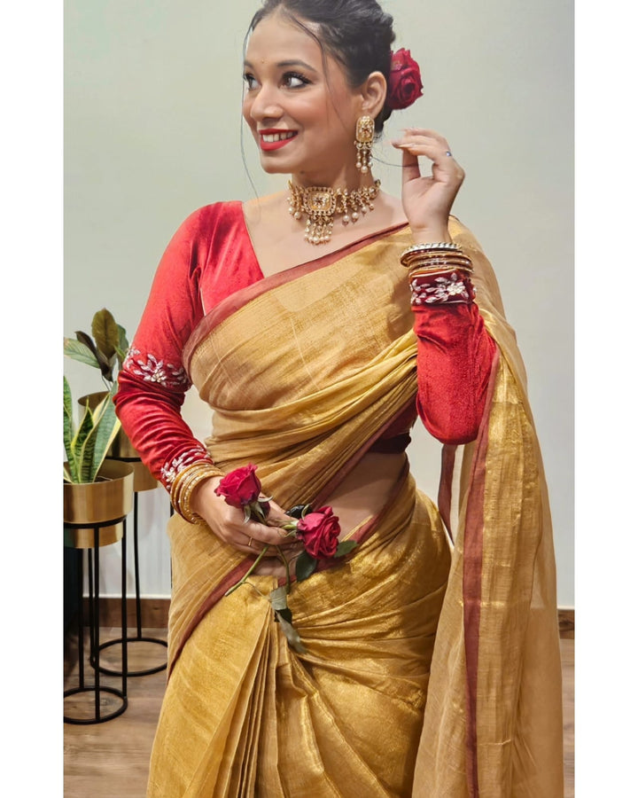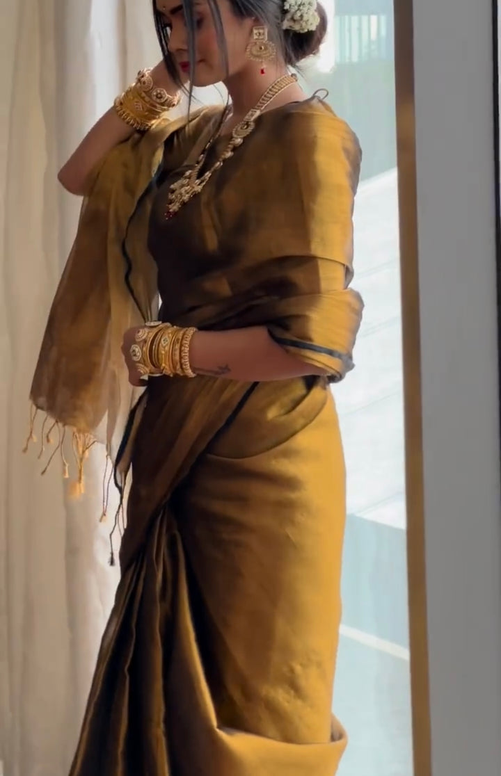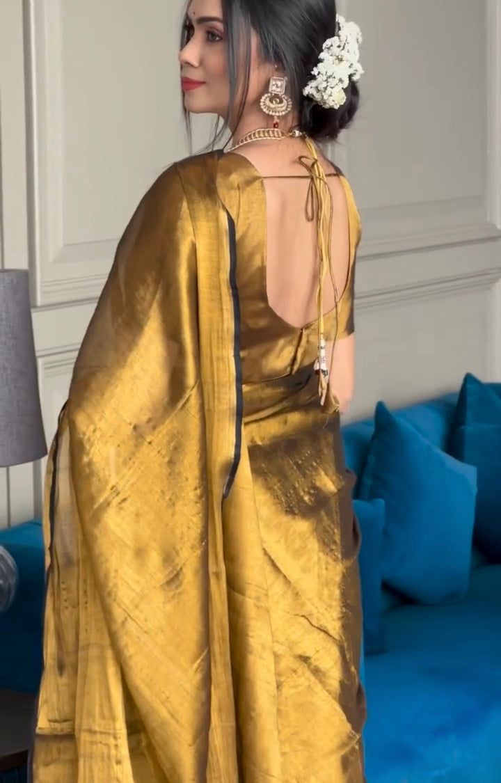 Golden Tissue Silk Saree With Blouse