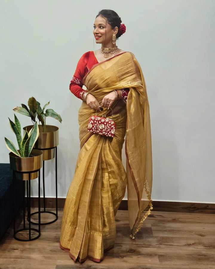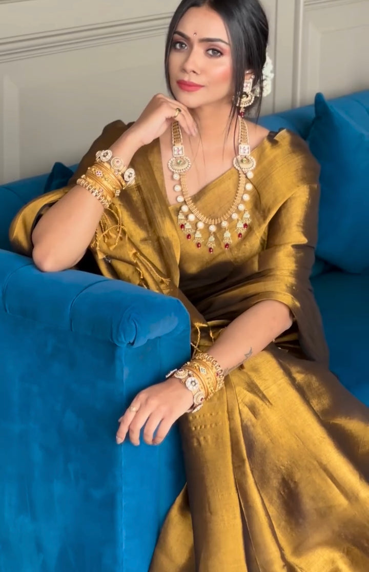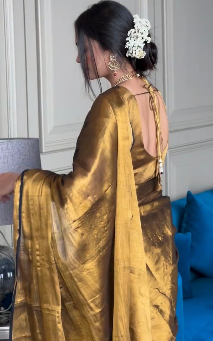 - Metallic Gold Tissue Silk Saree