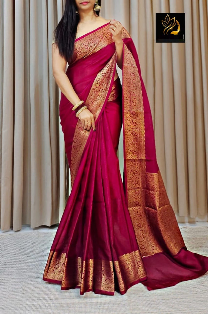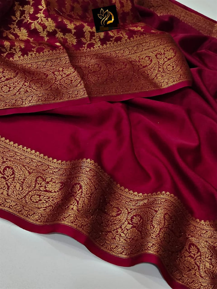 - Gorgeous Maroon Banarasi Semi-Georgette Soft Silk Saree