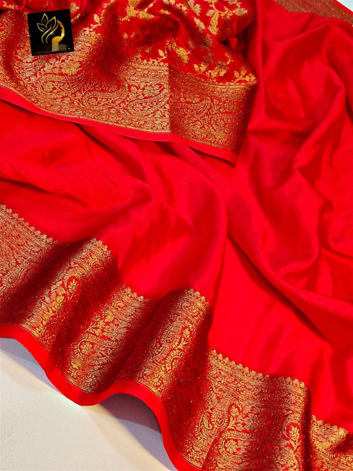 - Gorgeous Red Banarasi Semi-Georgette Soft Silk Saree