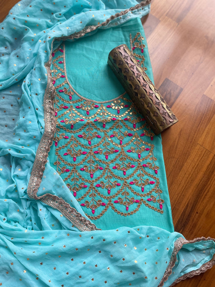 Gota Patti Suit In Blue With Matching Dupatta