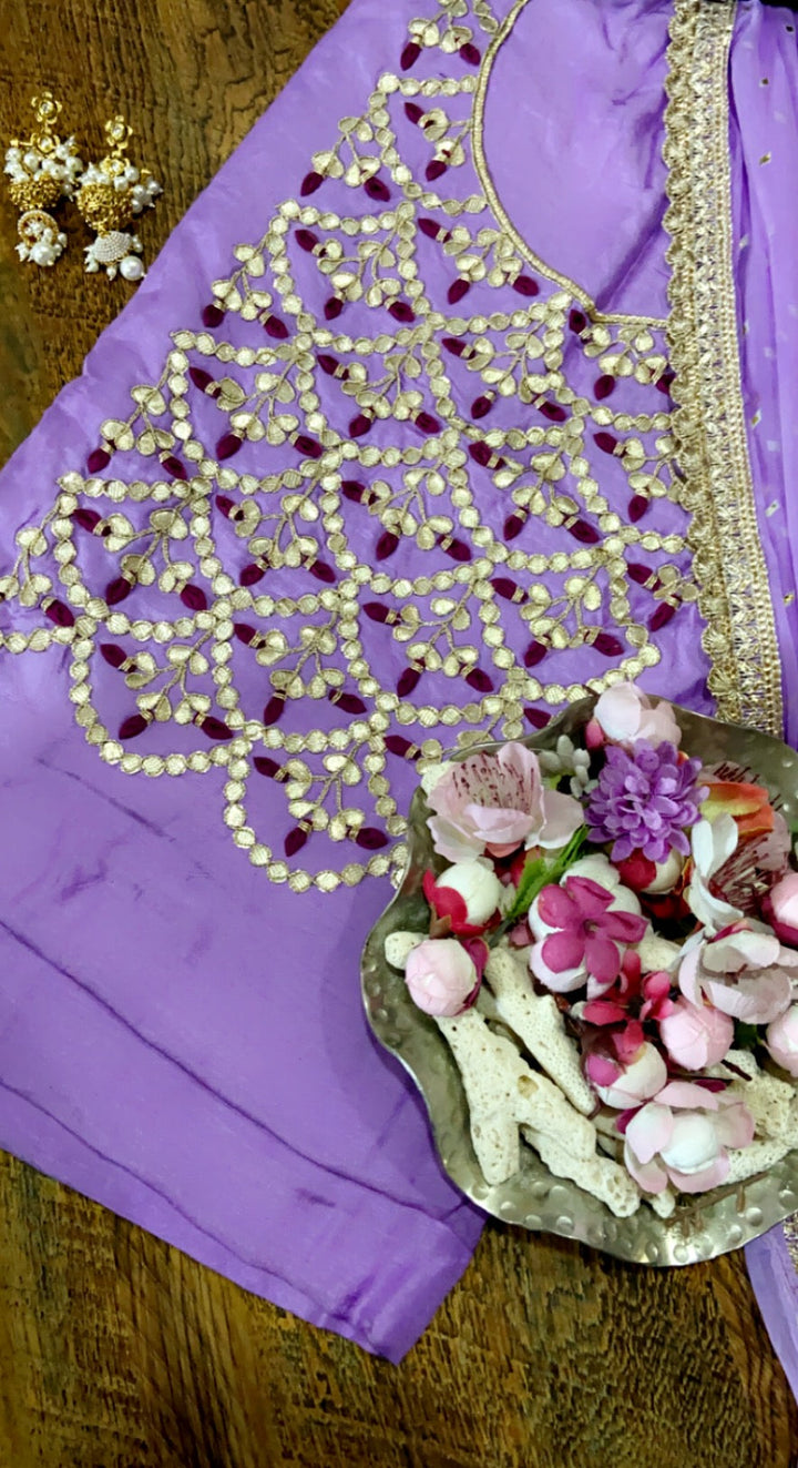 Top - Pure Soft Chanderi With Handwork On Neck ( 2.5 mtr fabric can stitch upto 50+ size)