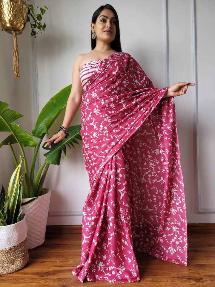 Pink Cotton Printed Saree