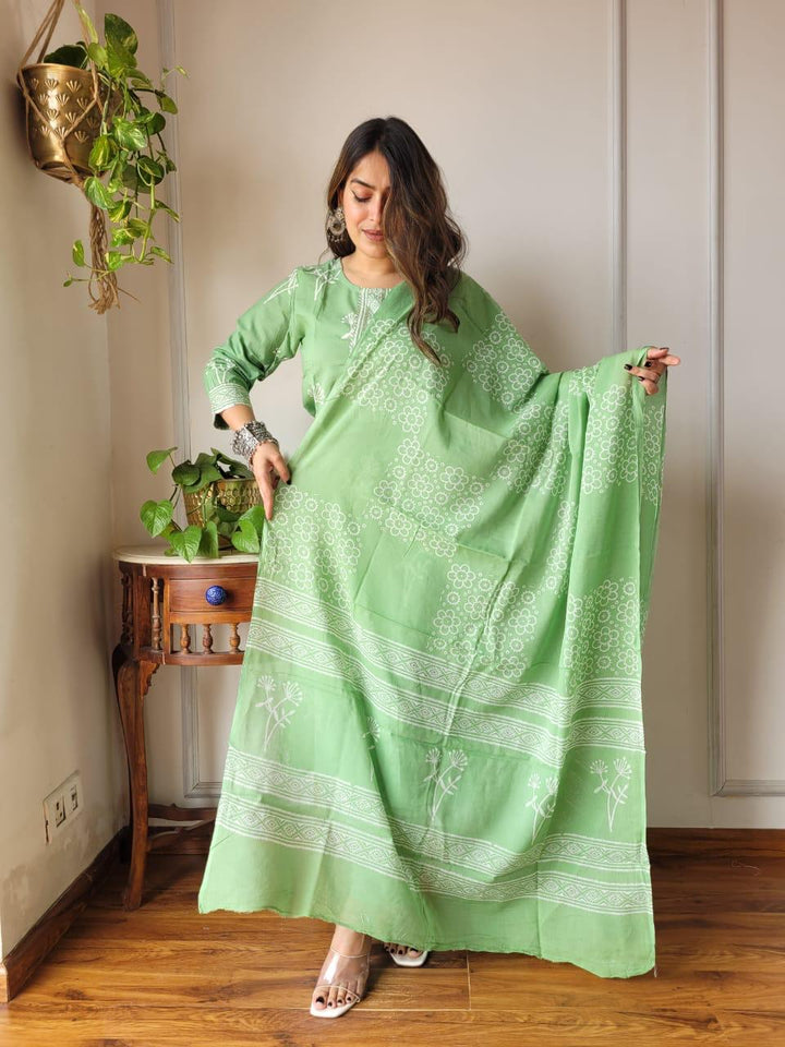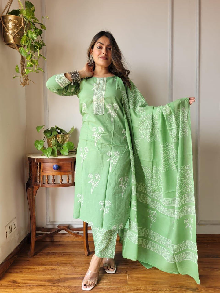 Pista Green Cotton Suit Set