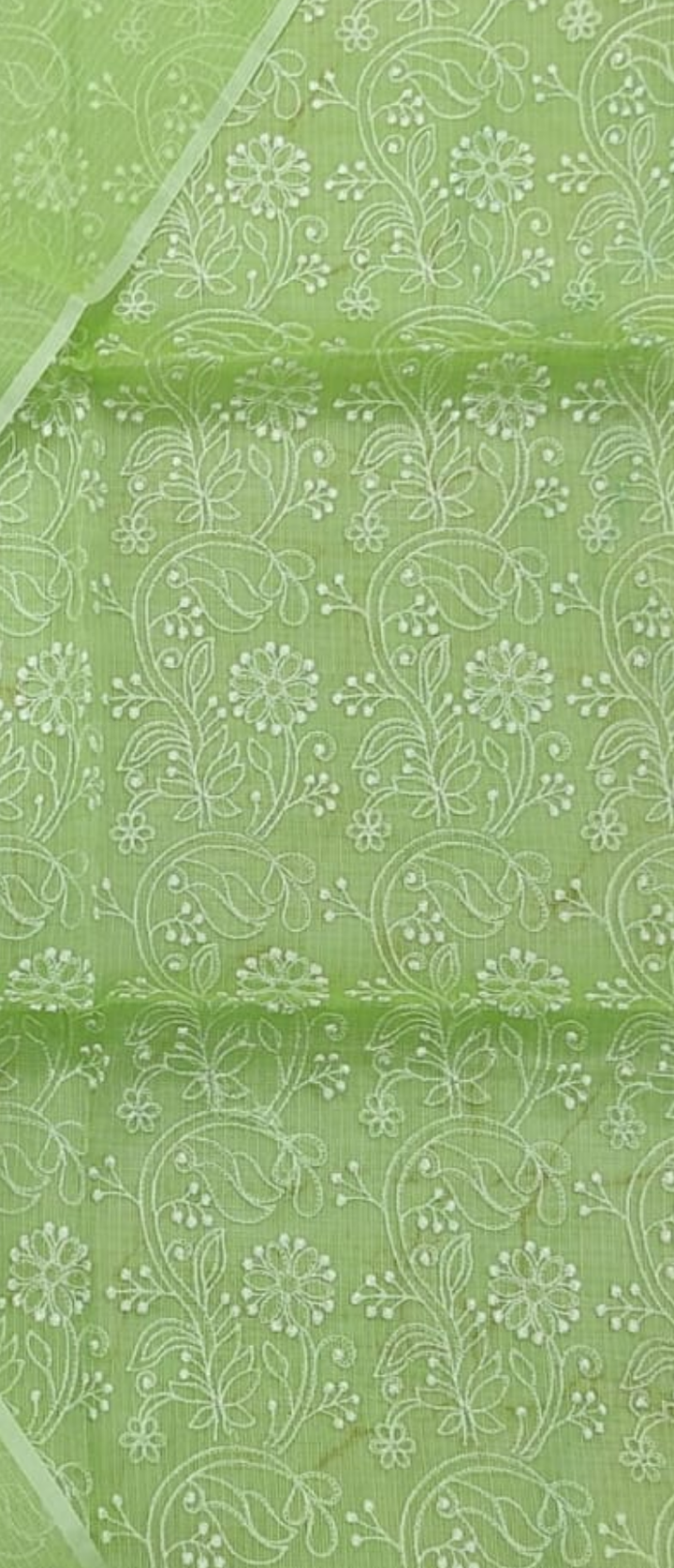 Nishigandha- Green Kota Doria Embroidery Suit With Dupatta (unstitched)