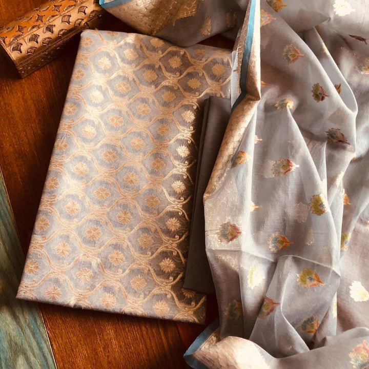 Grey And Golden Banarasi Salwar Suit