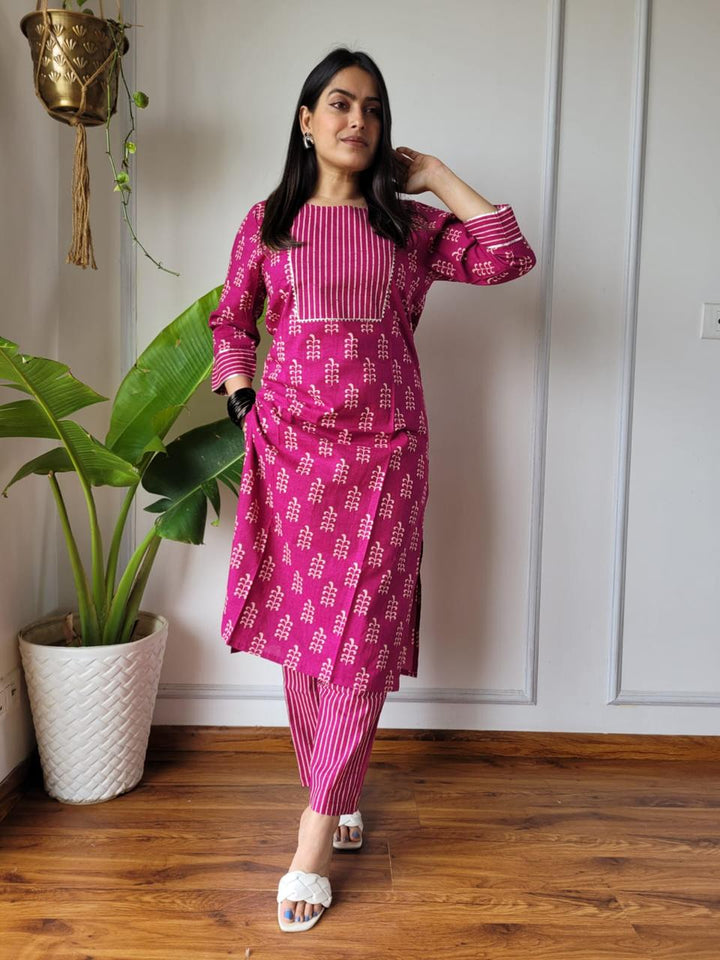 Pink Bagru Handblock printed designer Cotton Suit set ..( Office Wear)*