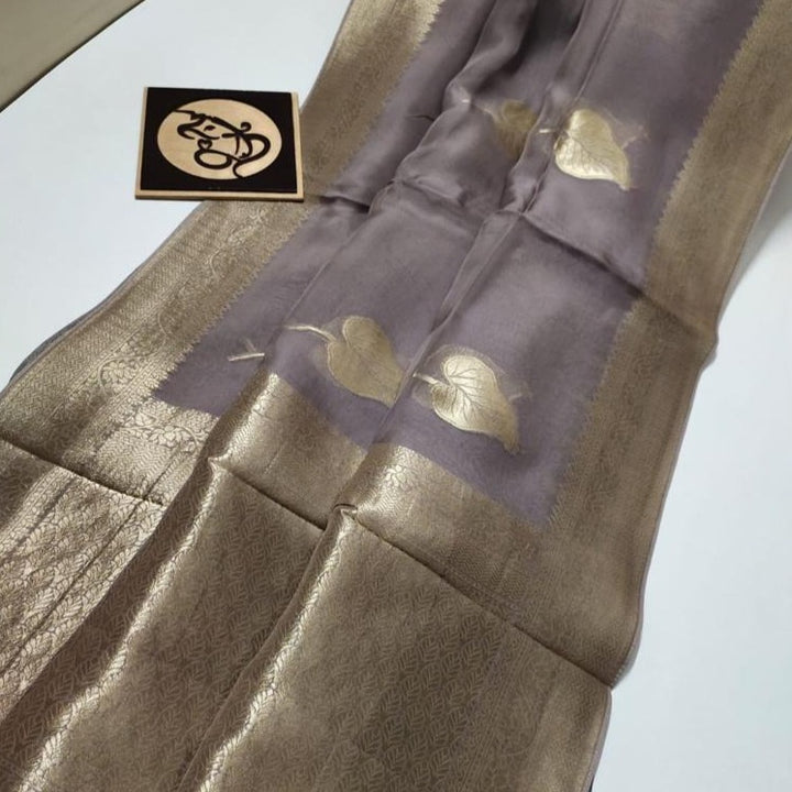 - Ash Grey Banarasi Semi-Georgette Soft Silk Saree