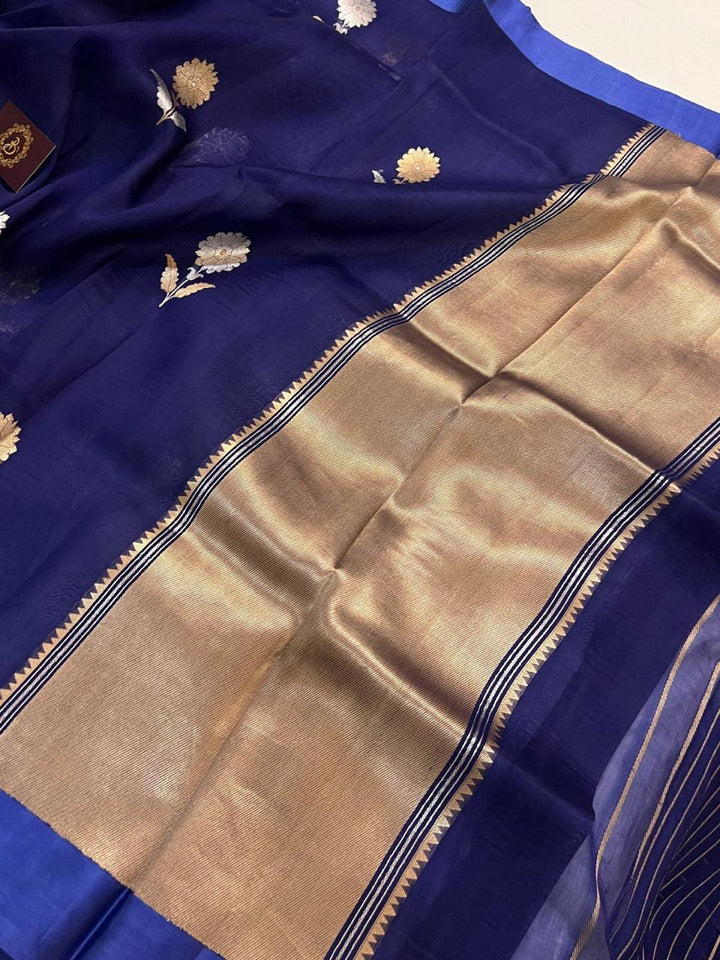 - Navy Blue Banarasi Semi-Georgette Soft Silk Saree