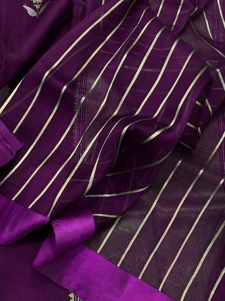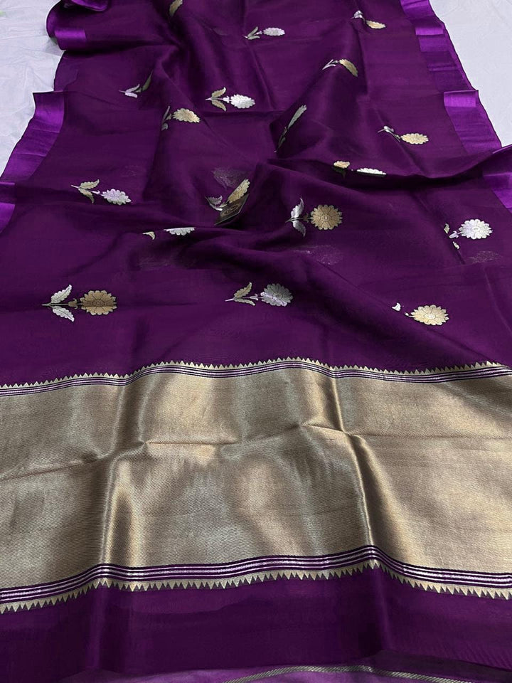 - Wine Banarasi Semi-Georgette Soft Silk Saree