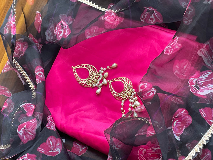 Hot Pink and Black Organza Dupatta Salwar Suit
