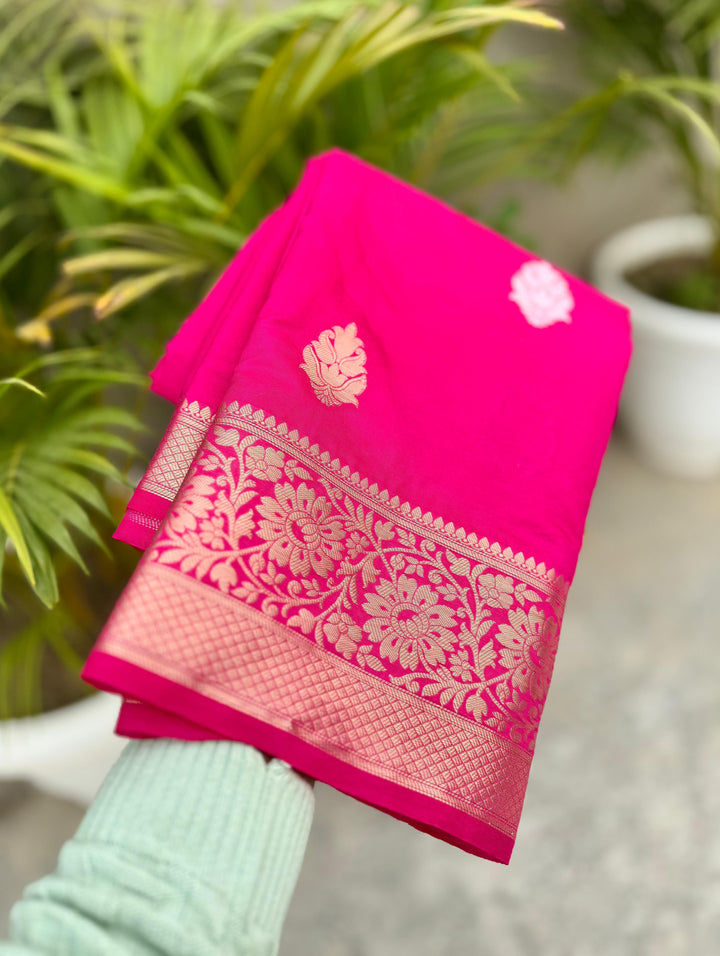 - Hot Pink Banarasi Semi Soft Silk Saree