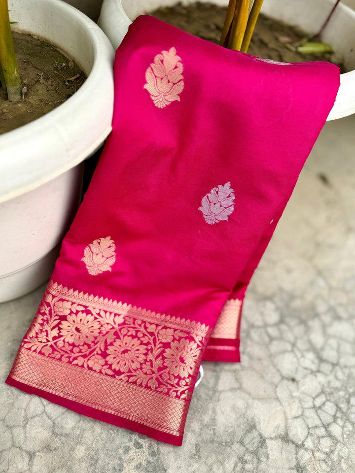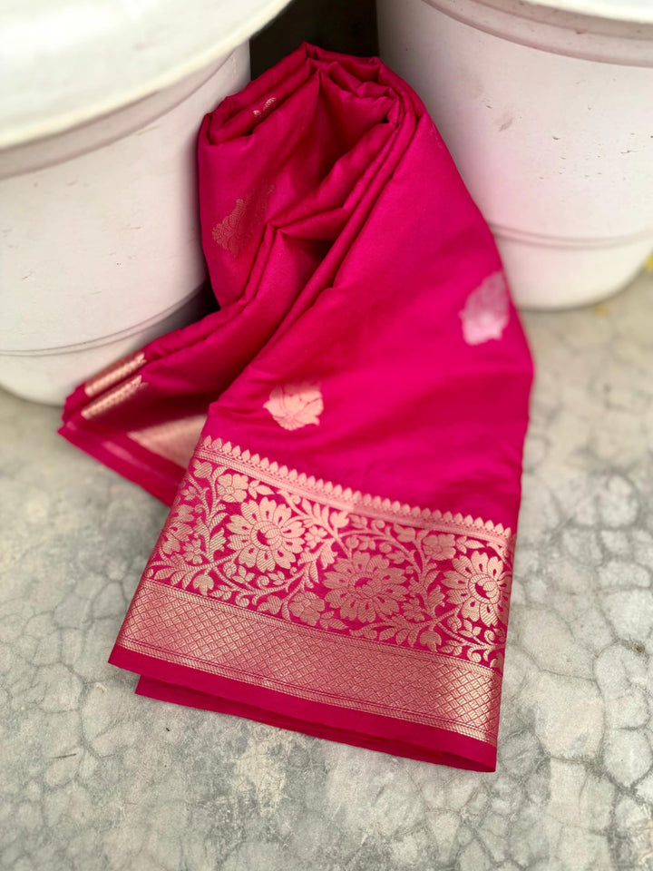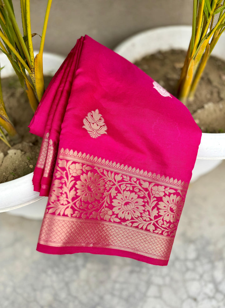 Hot Pink Banarasi Soft Silk with Zari work Saree