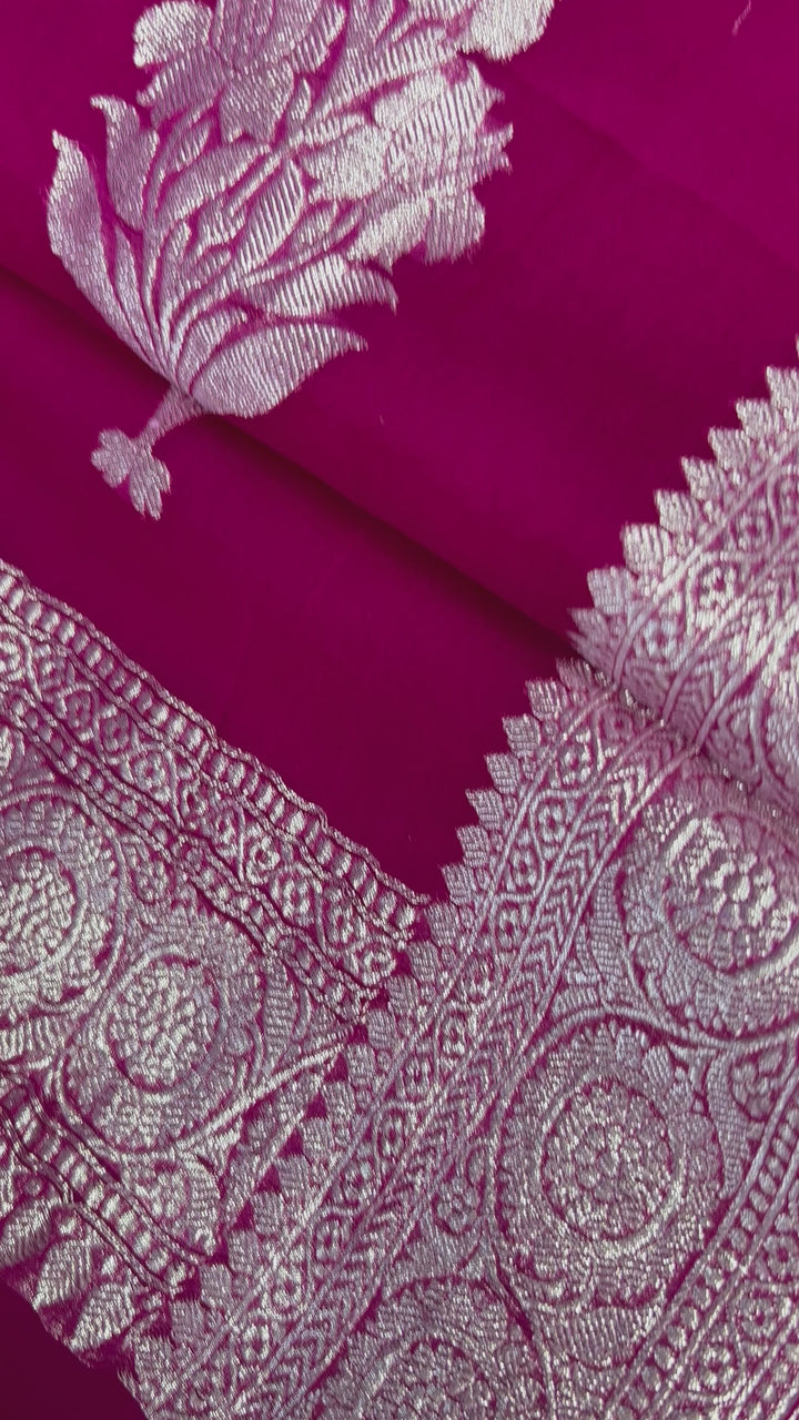 Hot Pink Khaddi Banarasi Chiffon Saree