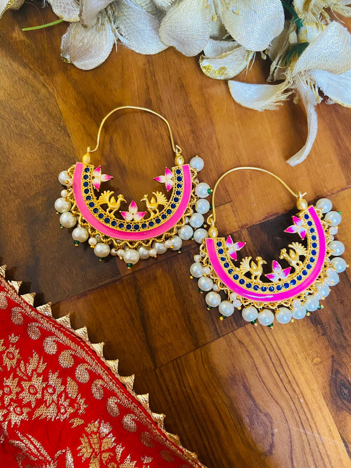 Hot Pink Meenakari Earrings