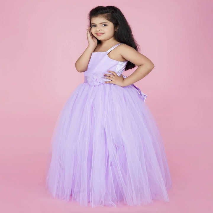 Place order for this Trendy Purple Dress For Your Little Girl And Give Her A Princess Look.We Create These long Dress has a satin belt with flower to give it a perfect party look .This Designer Party Dress Has sation top and is very comfortable wear. This Long Party Dress Is Must Have For Little Girls'S wardrobe.