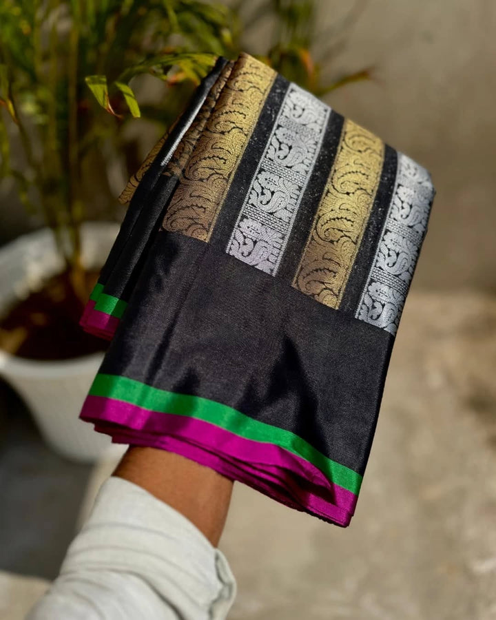 - Wedding Wear black Semi Kathan Soft Silk Saree