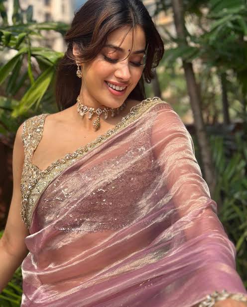 - Jaahnavi kapoor inspired Pink Soft Tissue Saree