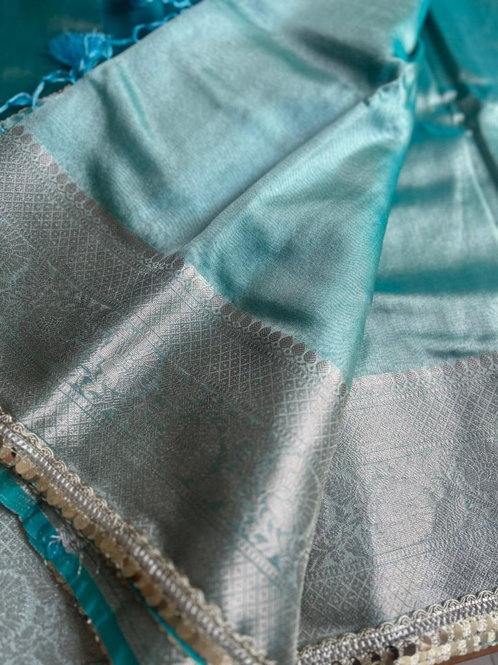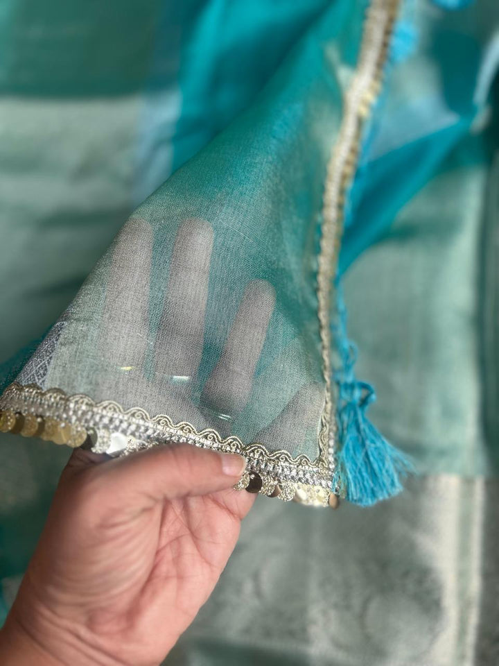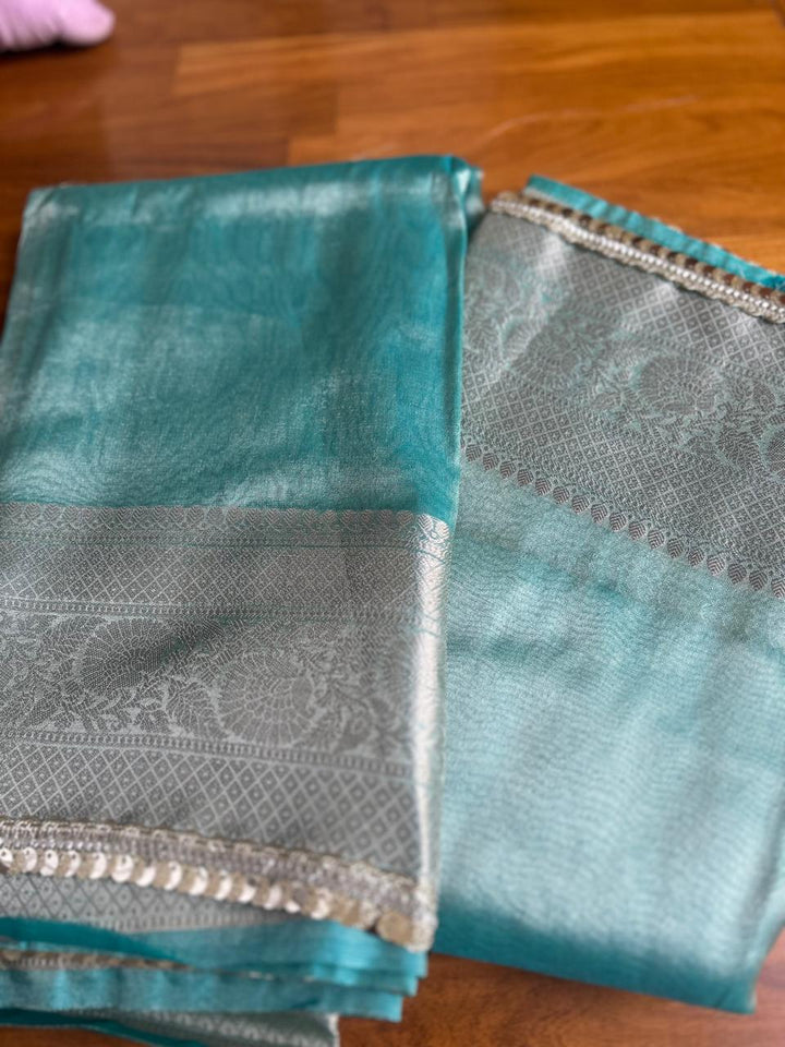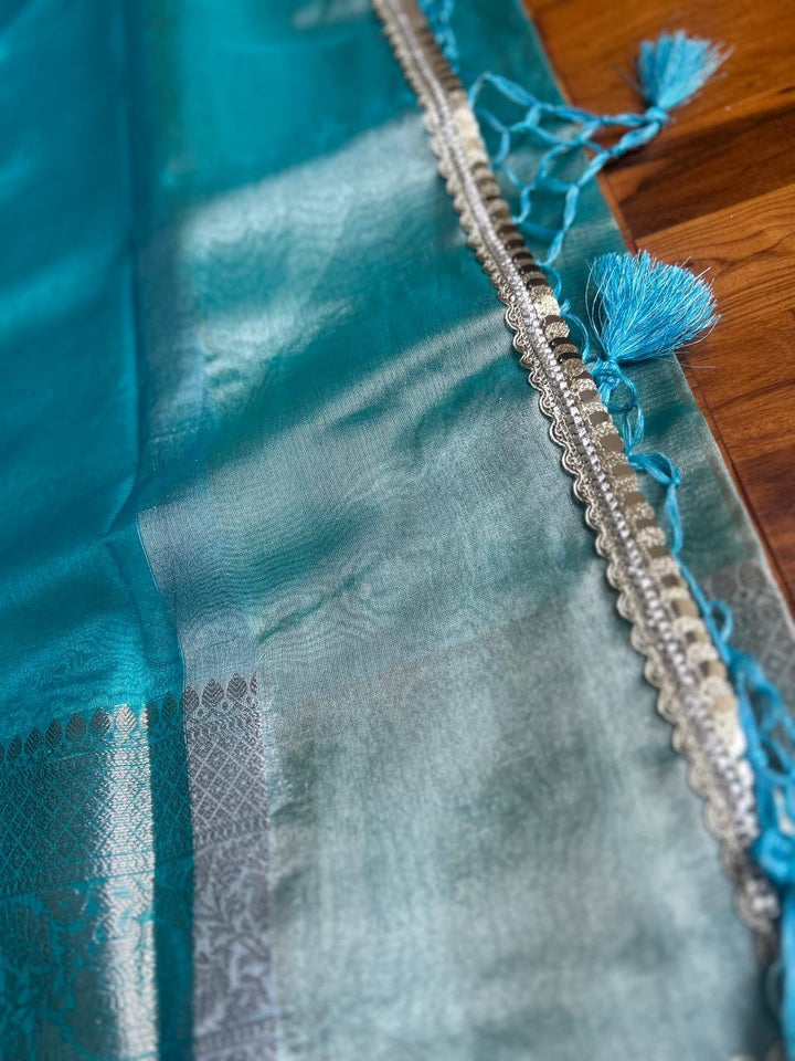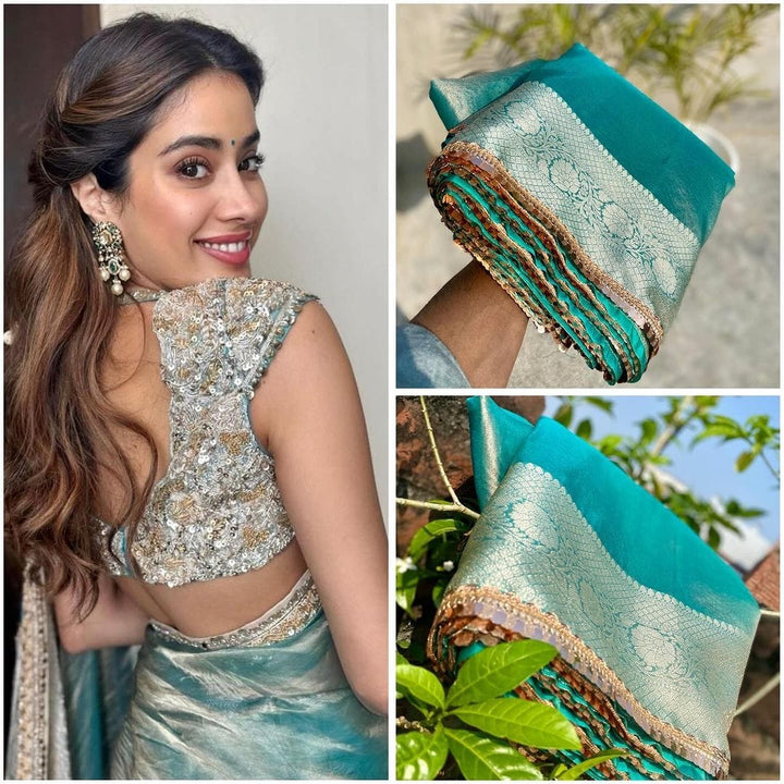 - Jaahnavi kapoor inspired Blue Soft Tissue Saree