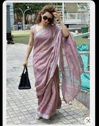 Flaunt Your Style With Our Bollywood Style Mauve Pure Linen Saree Made Out Of Chosen Threads This Saree Is A Must-Have In Your Traditional Closet. Our Mauve Linen Sarees Are Always In Fashion And Perfect For Any Of Occasion. This Linen Saree Comes With A Matching Blouse Which Can Be Styled According To Your Design. The Tassels On Pallu Adds Charm To It.