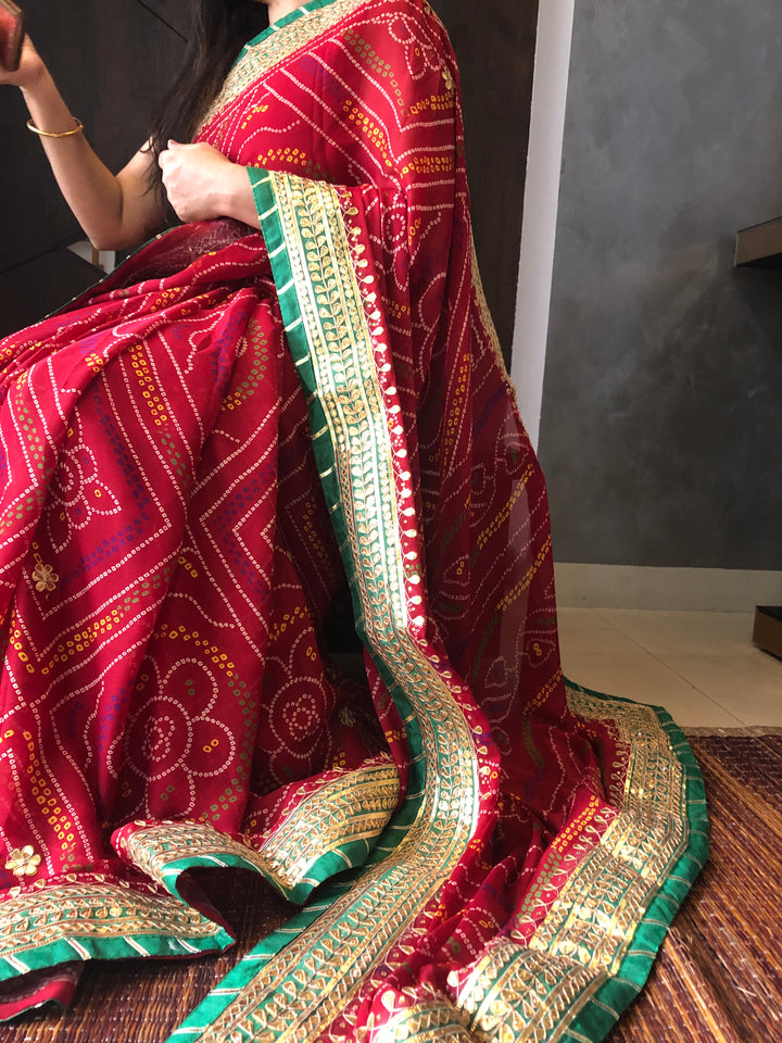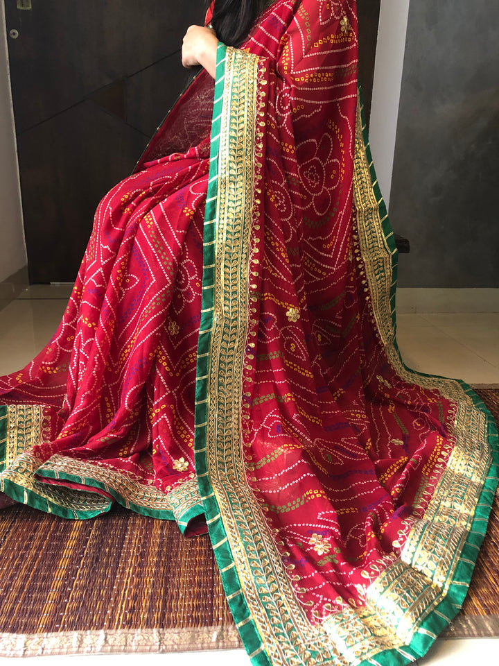 - Traditional Red Bandhini Gota Patti Georgette Saree