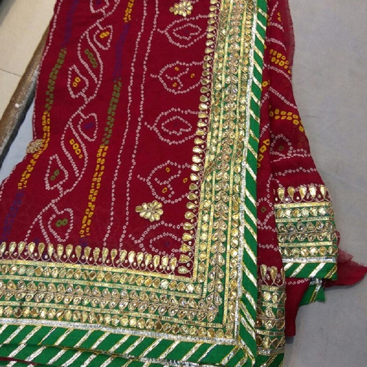 - Traditional Red Bandhini Gota Patti Georgette Saree