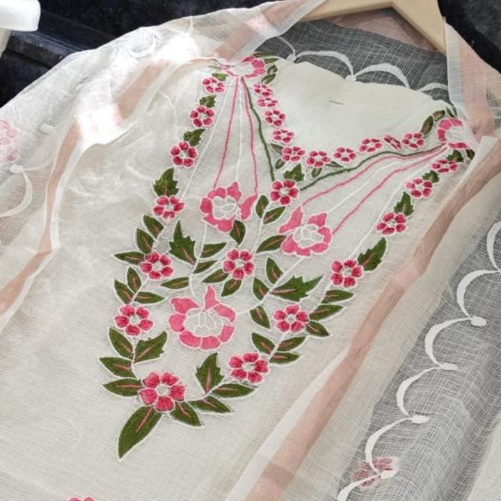 Arundhati- Kota Doria Embroidered Suit Set In White Comes With 3 Pieces Suit 2.5 Mtr Top In Kota ,2.5 Mtr Dupatta In Kota,2.5 Mtr Bottom In Cotton. You Can Carry Beautiful Natural Stone Earrings With It. This Kota Doria Suit Has Beautiful Work Done By Our Karigars.,Free Shipping And Cod Available, Shipping Worldwide.
