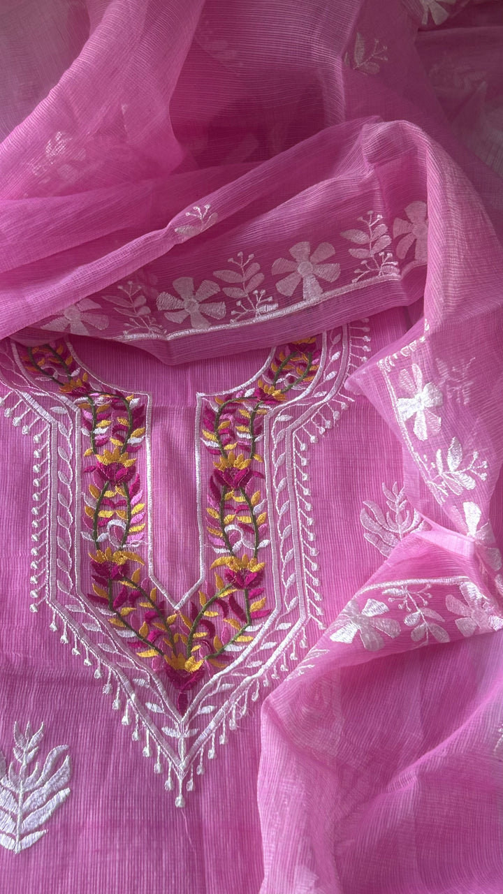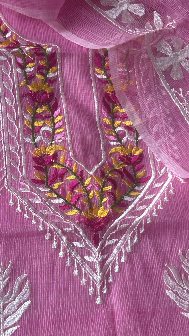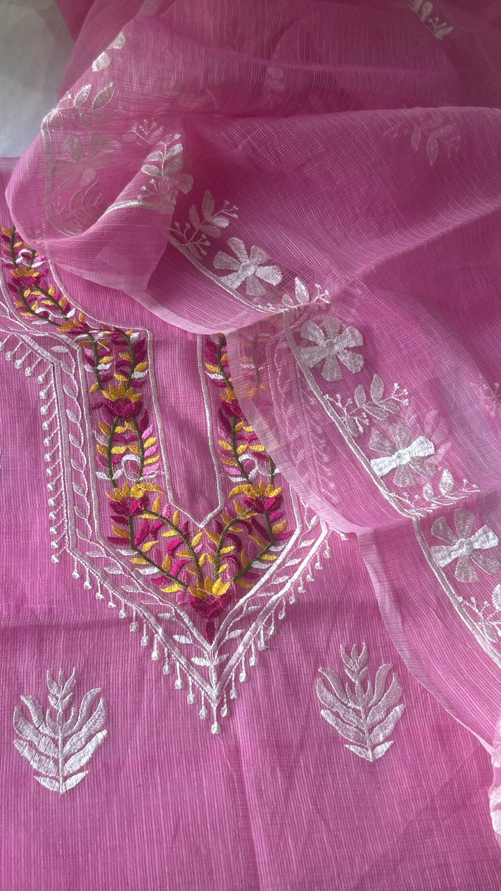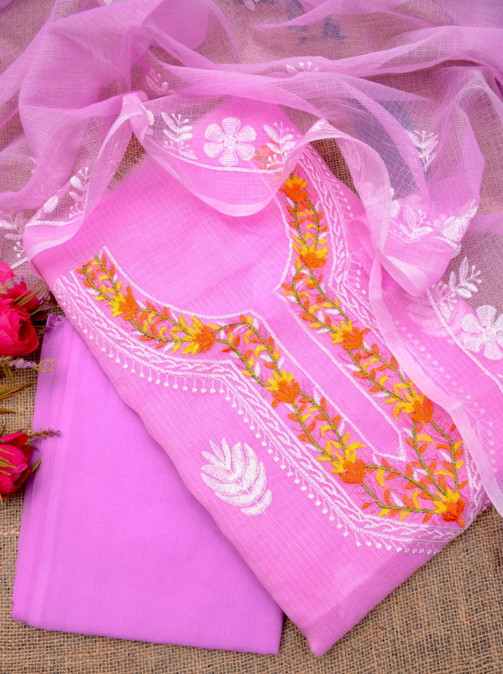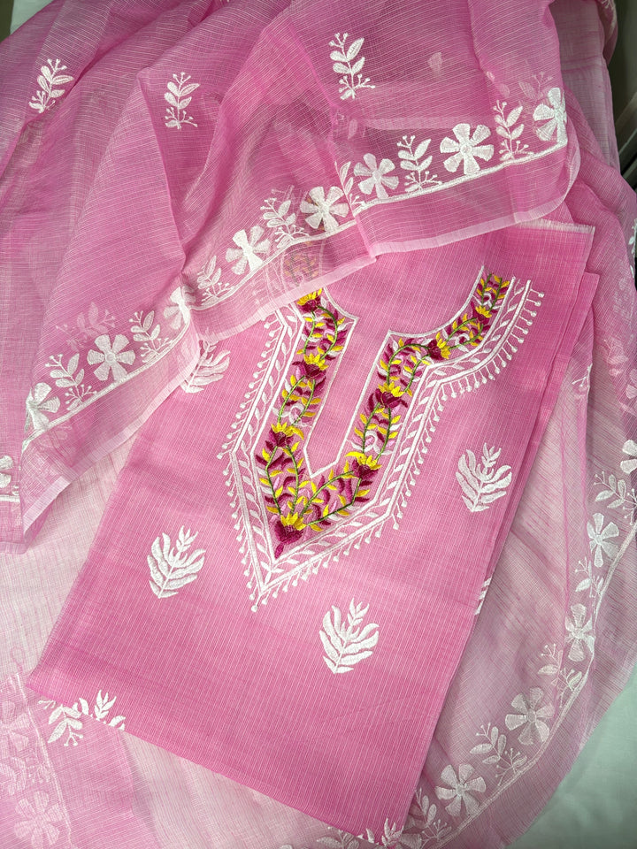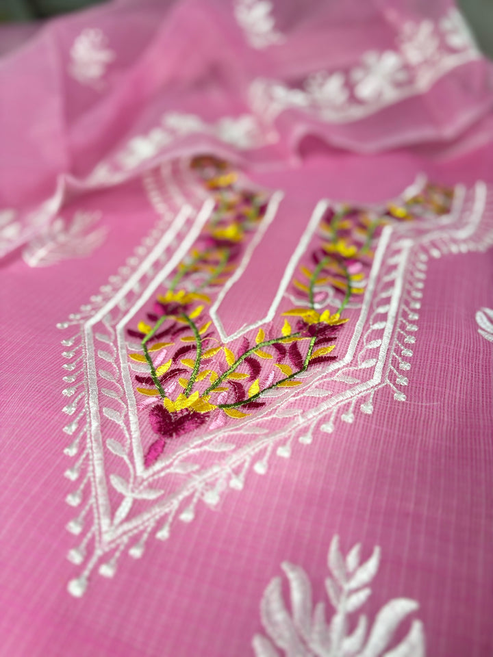 Rati- Kota Doriya Embroidery Work Suit In Pink (unstitched)